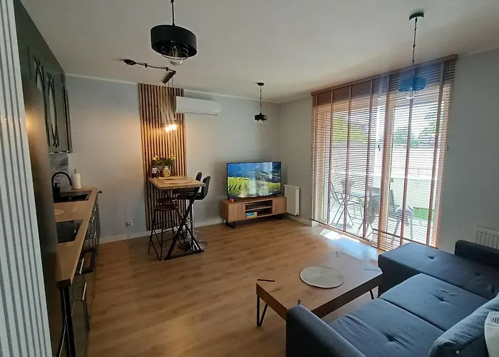 Die 1-Zimmer-Ferienwohnung Loftowa Przystan Gizycko befindet sich in der Nähe von verschiedenen Attraktionen der Stadt: St. Bruno liegt unter anderem etwa 6 Fußminuten von hier entfernt. Das Apartment hat auch eine Terrasse mit Blick auf den Garten.